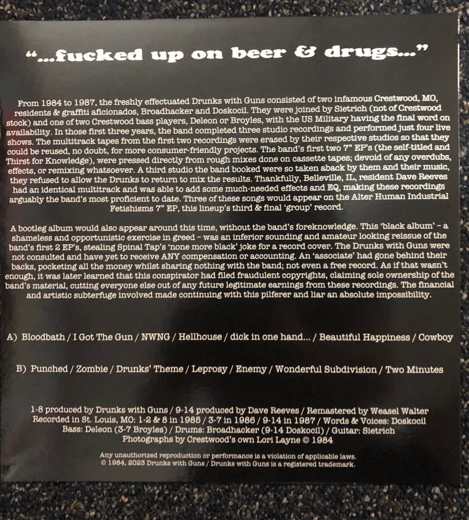 Drunks With Guns - Fucked Up On Beer & Drugs LP (self-released)