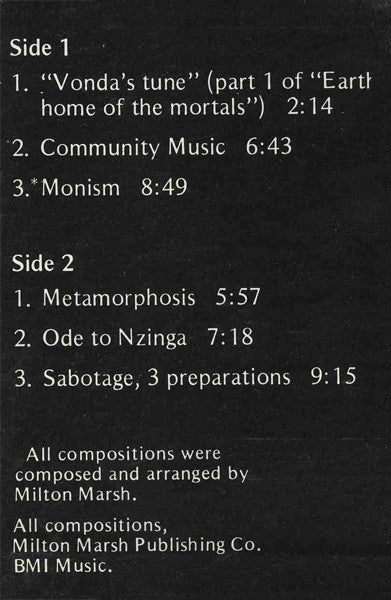 3rd gathering - May 23, 1974 at MEDIA SOUND, New York, N.Y. "Vonda's Tune", Community Music, Metomorphosis, Ode to Nzinga and Sabotage, 3 preperations were recorded at this session.