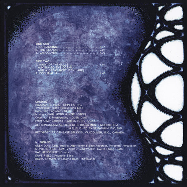 Packaged in a single jacket with 4-page insert, polylined inner sleeve and hype sticker affixed to the front of the shrink wrap. Limited edition of 500 copies. Produced by Paul Horn for V.I.P. Ltd. (Vancouver Island Productions Ltd.) Recorded at Canbase Studios, Vancouver, B.C., Canada.